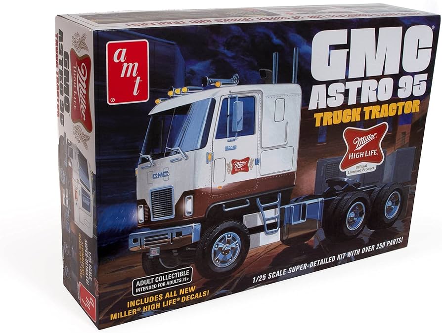 Amazon Com Amt Gmc Astro 95 Semi Tractor Miller Beer 1 25 Scale Model Kit Arts Crafts Sewing